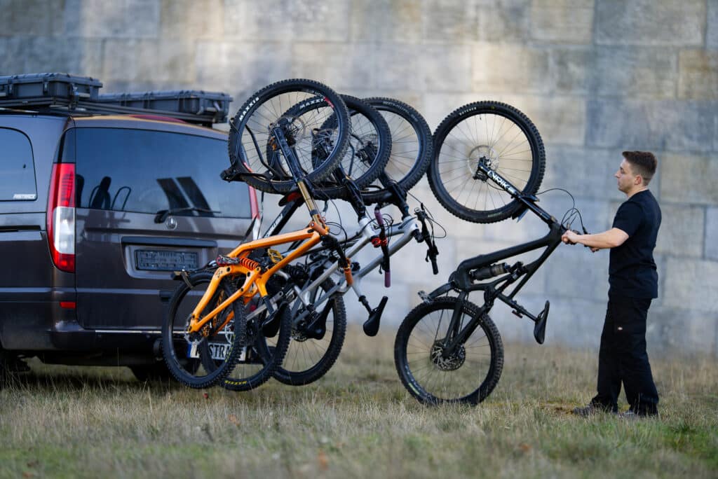 Deine Bikes reisen sicher wie nie: keine Rahmenklemmung, ohne Kontakt zwischen den Rädern - stabil fixiert für jede Strecke.
