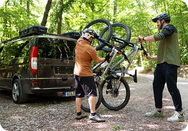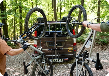 Deine Bikes reisen sicher wie nie: keine Rahmenklemmung, ohne Kontakt zwischen den Rädern - stabil fixiert für jede Strecke.